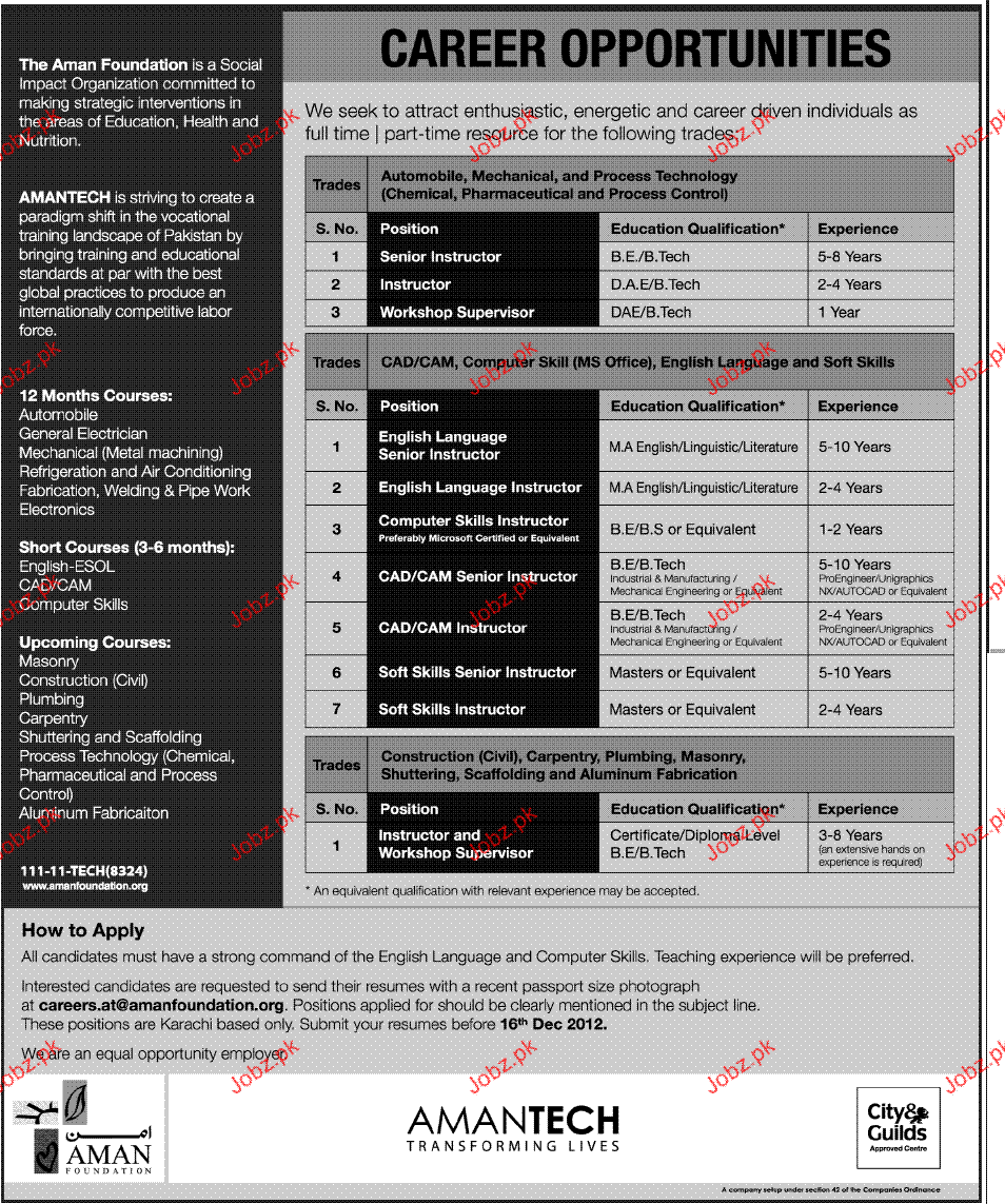 Apply as per details in job advertisement. Login to view further details of how to apply via https://www.jobz.pk online.