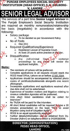 Senior Legal Advisors Job In Punjab Employees Social Securit