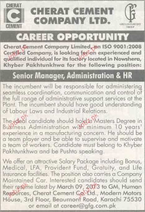 Apply as per details in job advertisement. Login to view further details of how to apply via https://www.jobz.pk online.