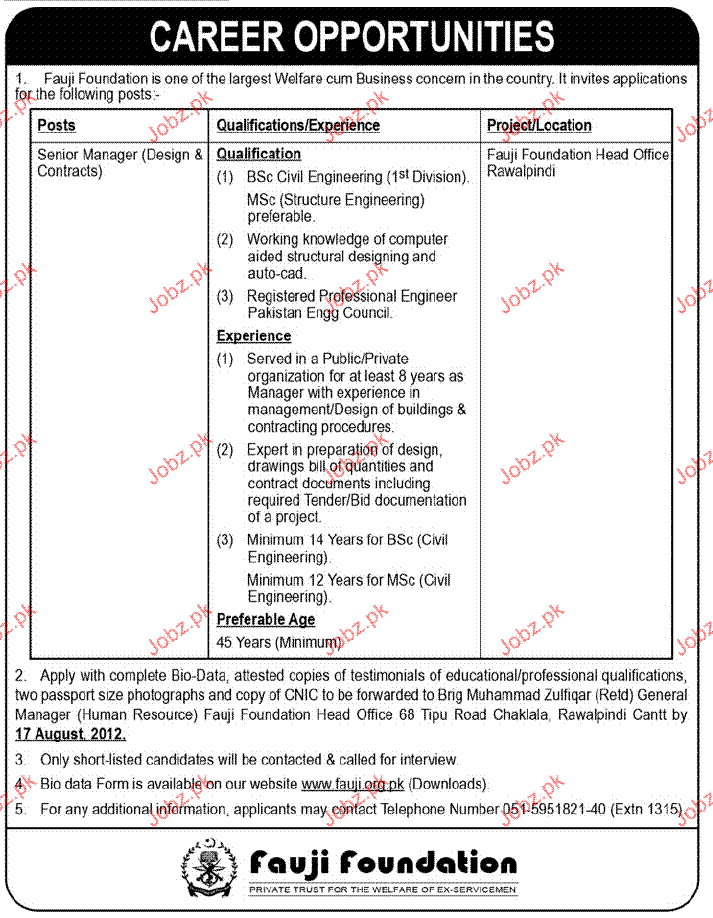Latest Fauji Foundation Management Posts Rawalpindi 2025