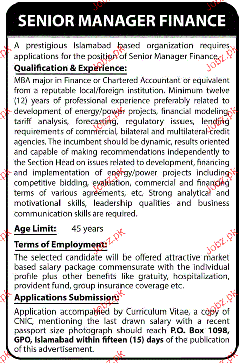 Apply as per details in job advertisement. Login to view further details of how to apply via https://www.jobz.pk online.