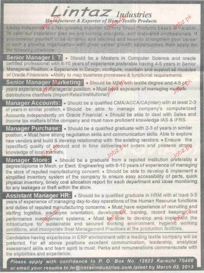 Apply as per details in job advertisement. Login to view further details of how to apply via https://www.jobz.pk online.