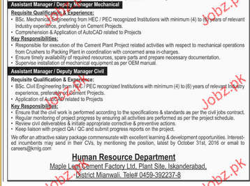 Senior Manager Mechanical, Manager Civil Job Opportunity