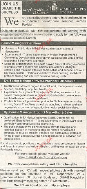 Senior Manager Operations, Deputy Senior Manager Wanted