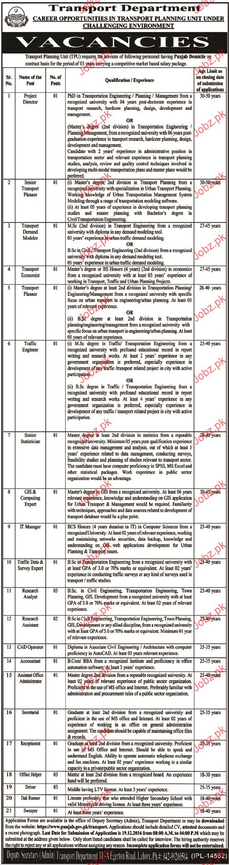 Apply as per details in job advertisement. Login to view further details of how to apply via https://www.jobz.pk online.