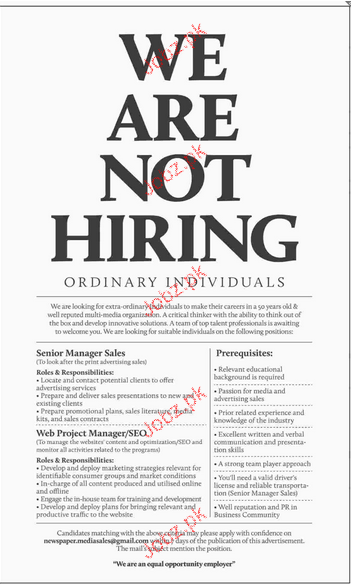 Apply as per details in job advertisement. Login to view further details of how to apply via https://www.jobz.pk online.