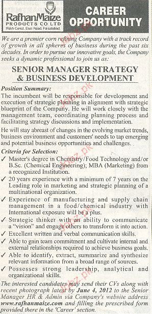 Senior Manager Strategy & Business Development Required