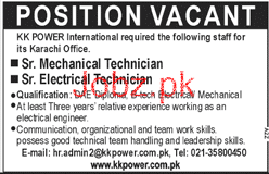 Latest KK Power International Pvt Limited Engineering Posts Karachi 2025