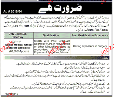 Apply as per details in job advertisement. Login to view further details of how to apply via https://www.jobz.pk online.