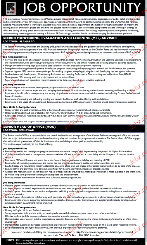 Apply as per details in job advertisement. Login to view further details of how to apply via https://www.jobz.pk online.