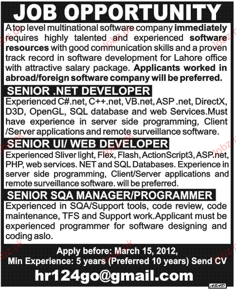 Apply as per details in job advertisement. Login to view further details of how to apply via https://www.jobz.pk online.
