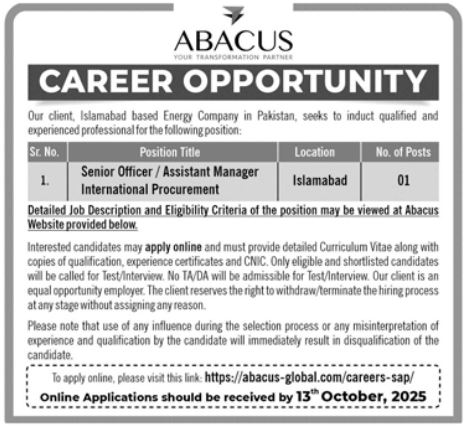 Senior Officer & Assistant Manager Jobs at Abacus Global