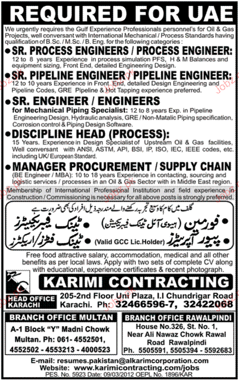 Senior Pipeline Engineer, Discipline Head Job Opportunity