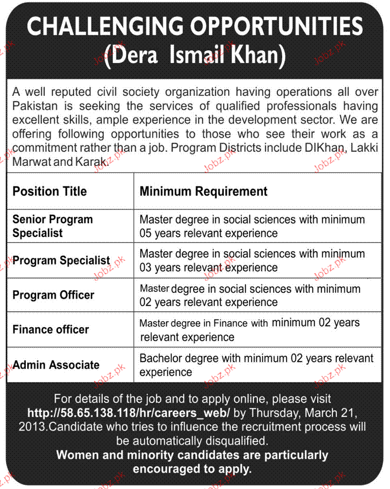 Apply as per details in job advertisement. Login to view further details of how to apply via https://www.jobz.pk online.
