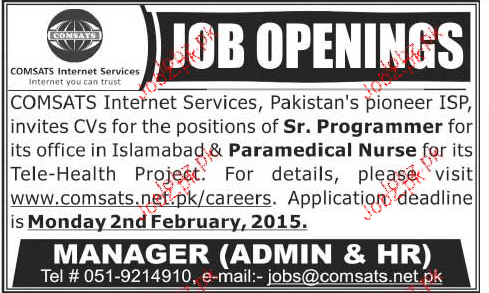 Senior Programmers And Paramedical Nurses Job Opportunity