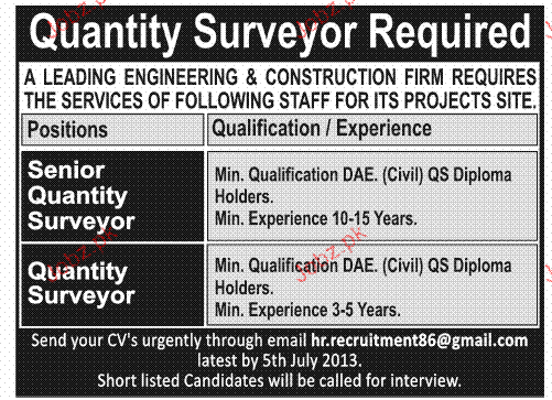 Senior Quantity Surveyors And Quantity Surveyors Wanted