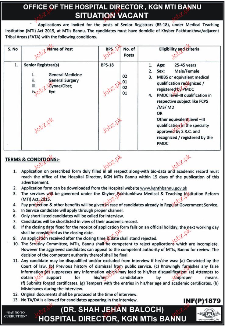 Latest Government Medical Posts Bannu 2025