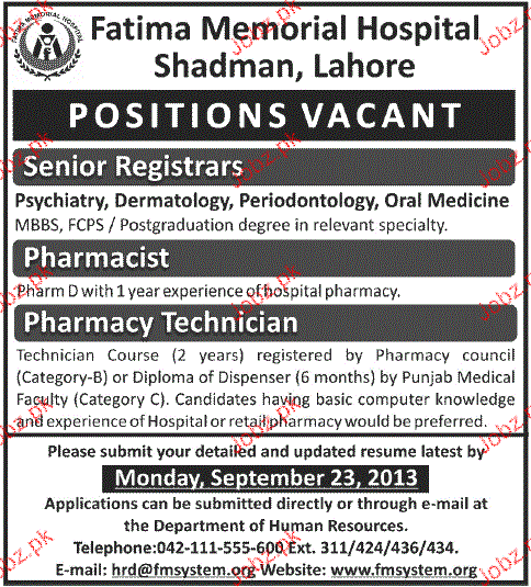 Senior Registrar, Pharmacist and Pharmacy Technicians Wanted