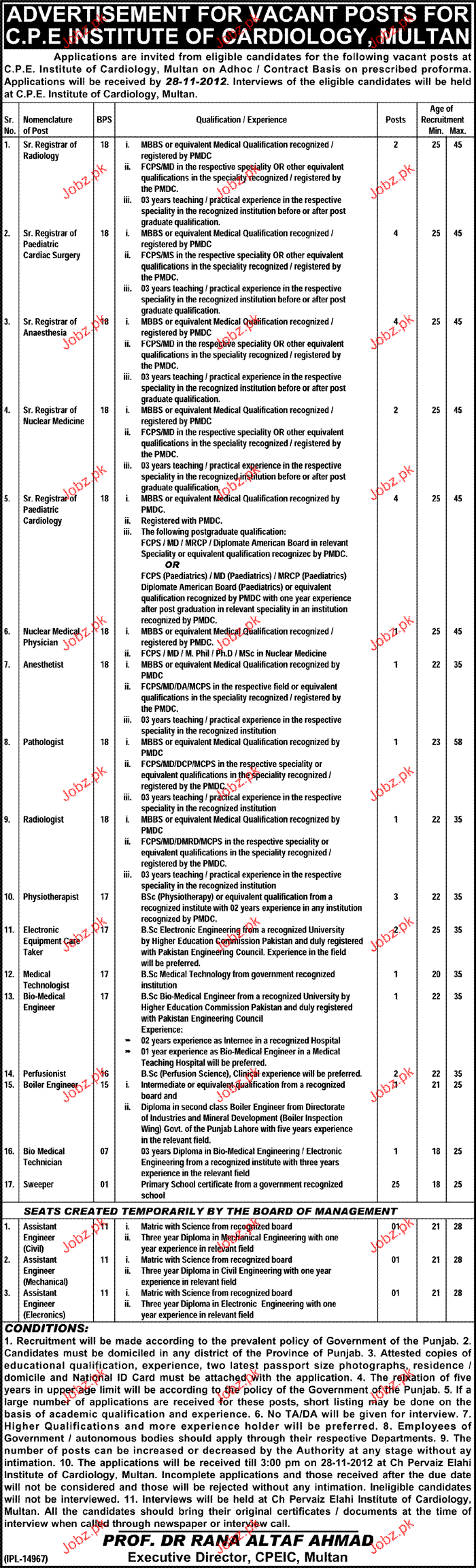 Apply as per details in job advertisement. Login to view further details of how to apply via https://www.jobz.pk online.