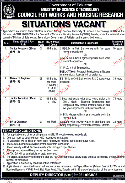 Apply as per details in job advertisement. Login to view further details of how to apply via https://www.jobz.pk online.