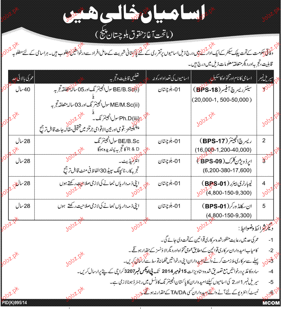 Apply as per details in job advertisement. Login to view further details of how to apply via https://www.jobz.pk online.