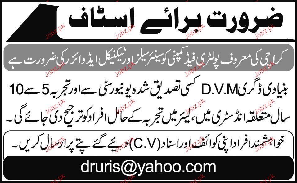Apply as per details in job advertisement. Login to view further details of how to apply via https://www.jobz.pk online.