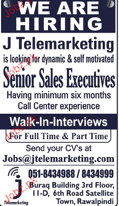 Senior Sales Executives and Telemarketing Staff are required in Rawalpindi.