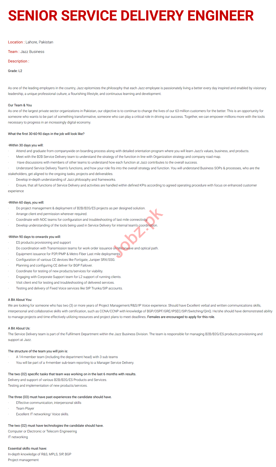 Senior Service Delivery Engineer Jobs In Jazz Telecom