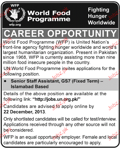 Apply as per details in job advertisement. Login to view further details of how to apply via https://www.jobz.pk online.