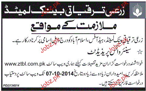 Senior Vice President Job in Zari Tariqati Bank Limited