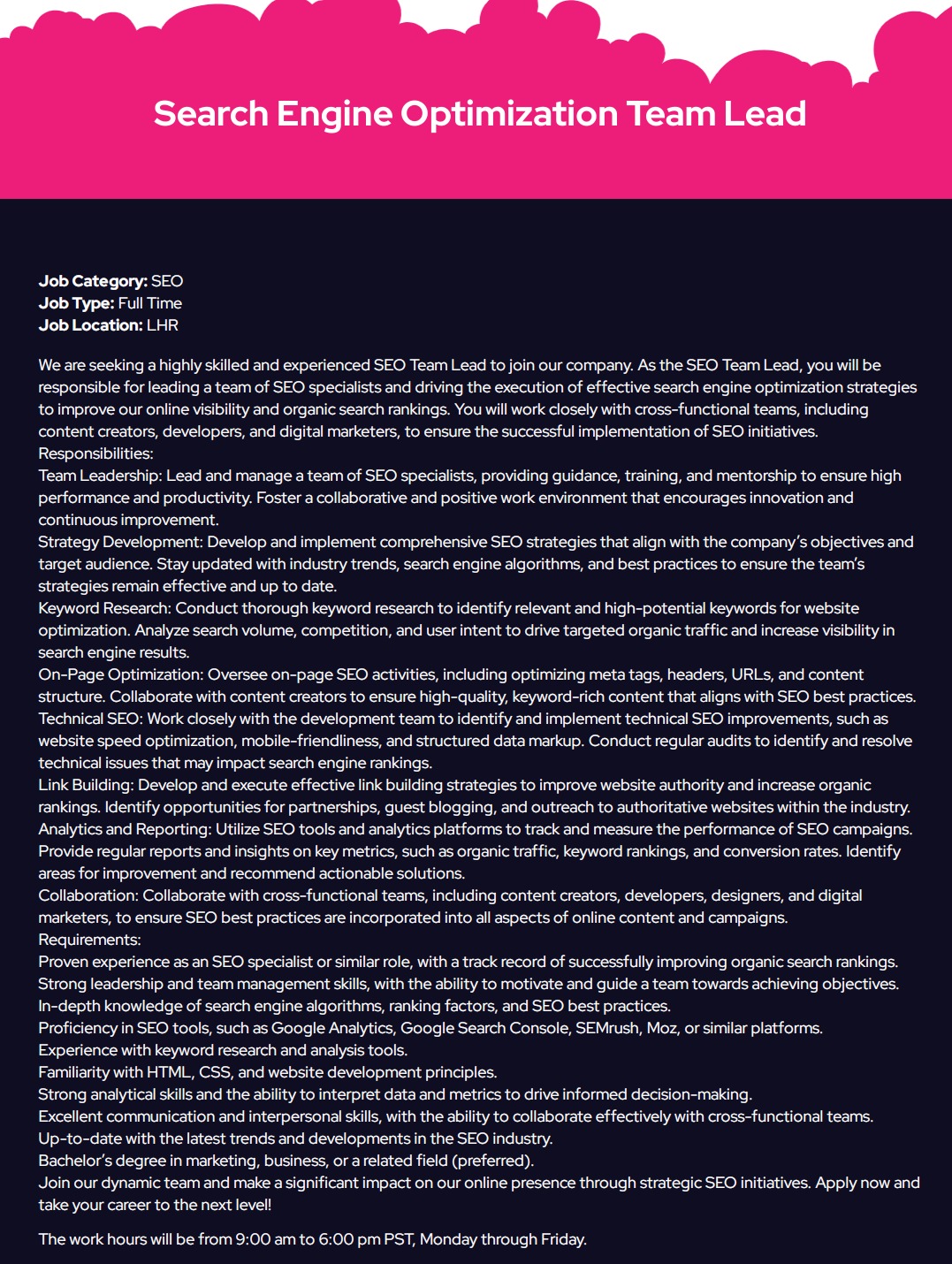 Original Source: https://speakeasymarketingpvt.com/career/search-engine-optimization-team-lead/