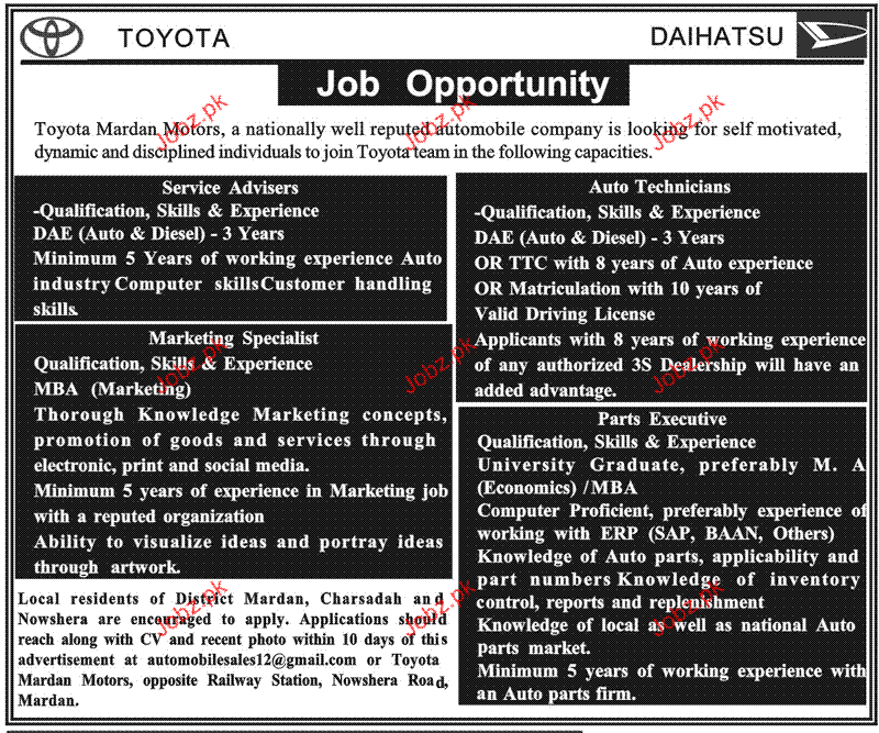 Apply as per details in job advertisement. Login to view further details of how to apply via https://www.jobz.pk online.