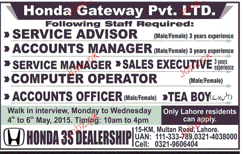 Service Advisor, Accounts Manager, Account Officer Wanted