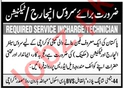 Service Incharge & Service Technician Jobs 2020 in Karachi