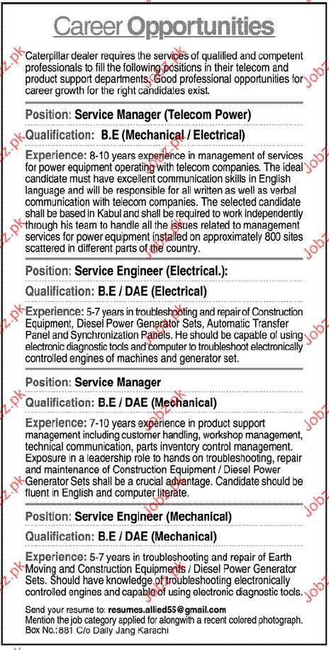 Apply as per details in job advertisement. Login to view further details of how to apply via https://www.jobz.pk online.