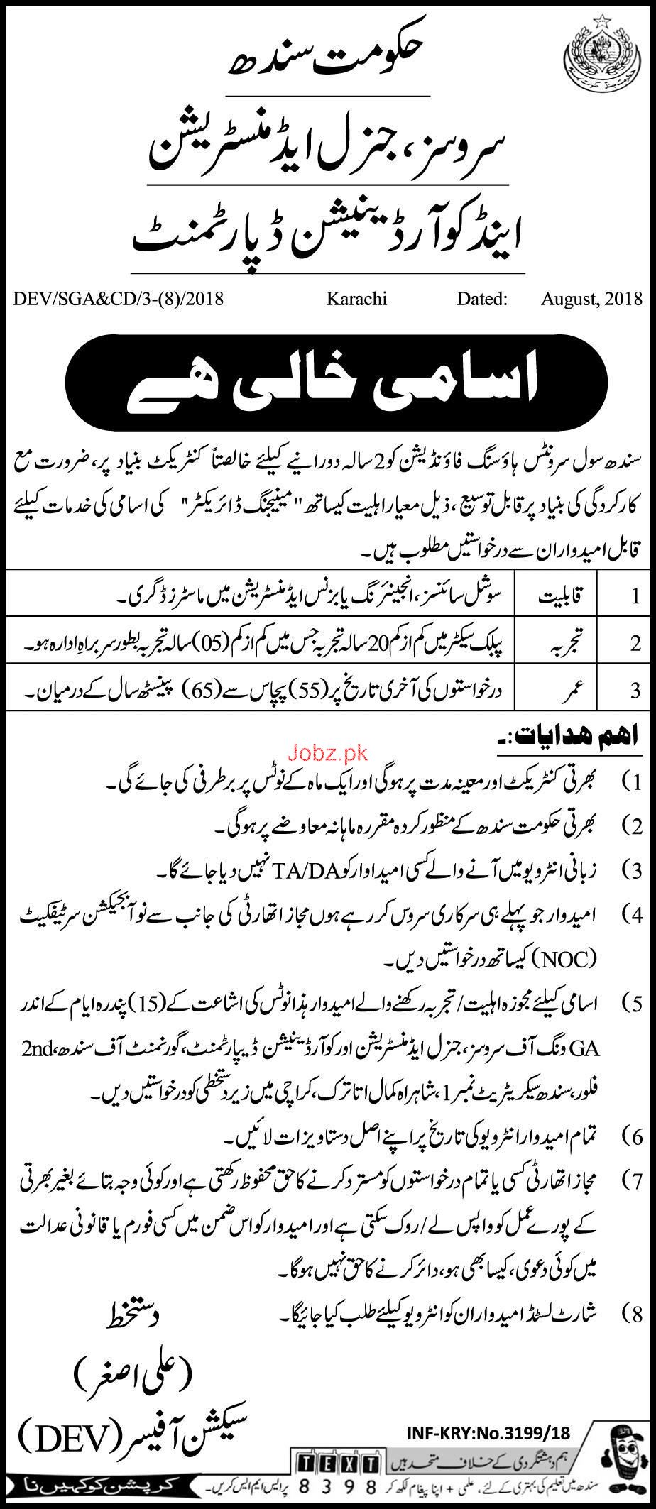 Latest Services & General Administration Department Management Posts Karachi 2025