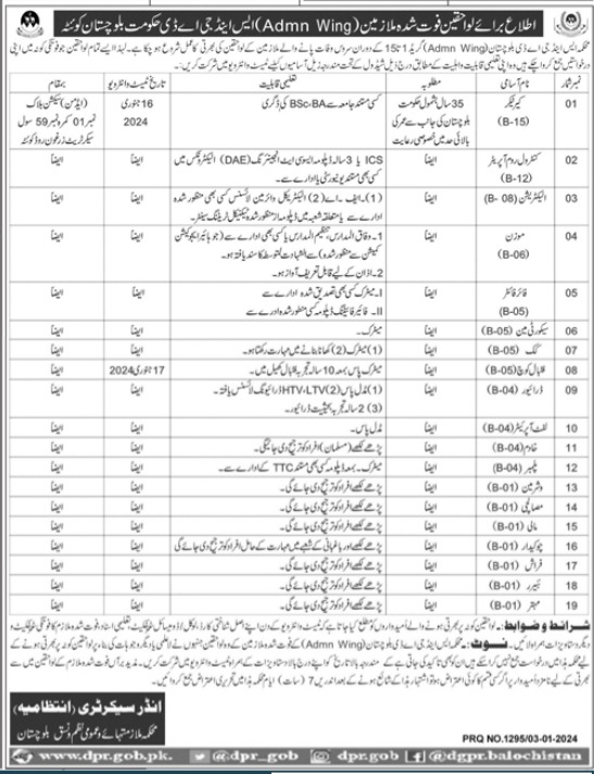 Vacant posts including moazan, masalchi, control room operator, care taker, farash, bearer, driver, plumber, washerman, mali, security man, fire fighter, cook, lift operator, khadam, electrician, chowkidar, mahter and football coach are announced in Services & General Administration Department Quetta, quetta Balochistan Pakistan as per 4 January 2024 advertisement in daily Jang Newspaper. Candidates with Primary, Middle, Matric and Intermediate etc. educational background will be preferred.