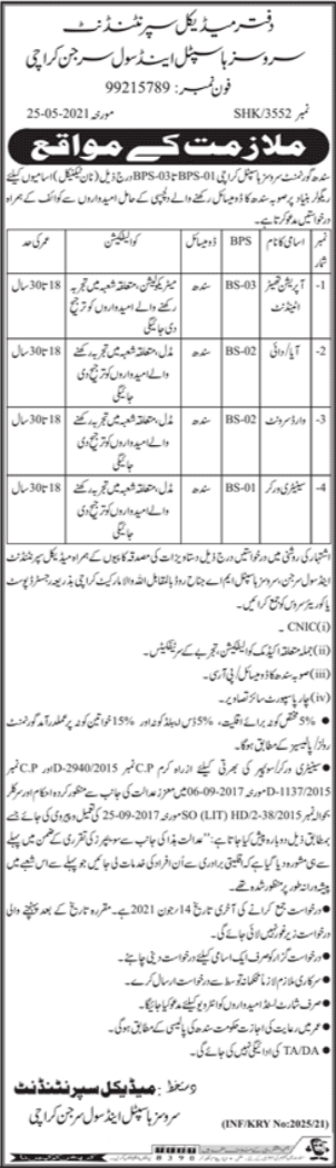 Vacancies in Services Hospital Advertisement June 2021