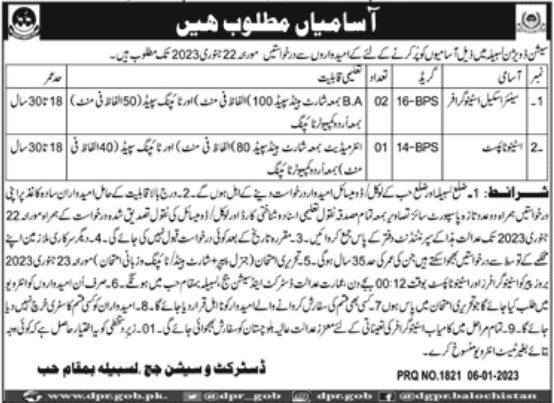 Session Division is looking for candidates for following posts as per job advertisement published in daily Jang Newspaper of January 7, 2023 for location Lasbela, lasbela Balochistan Pakistan: