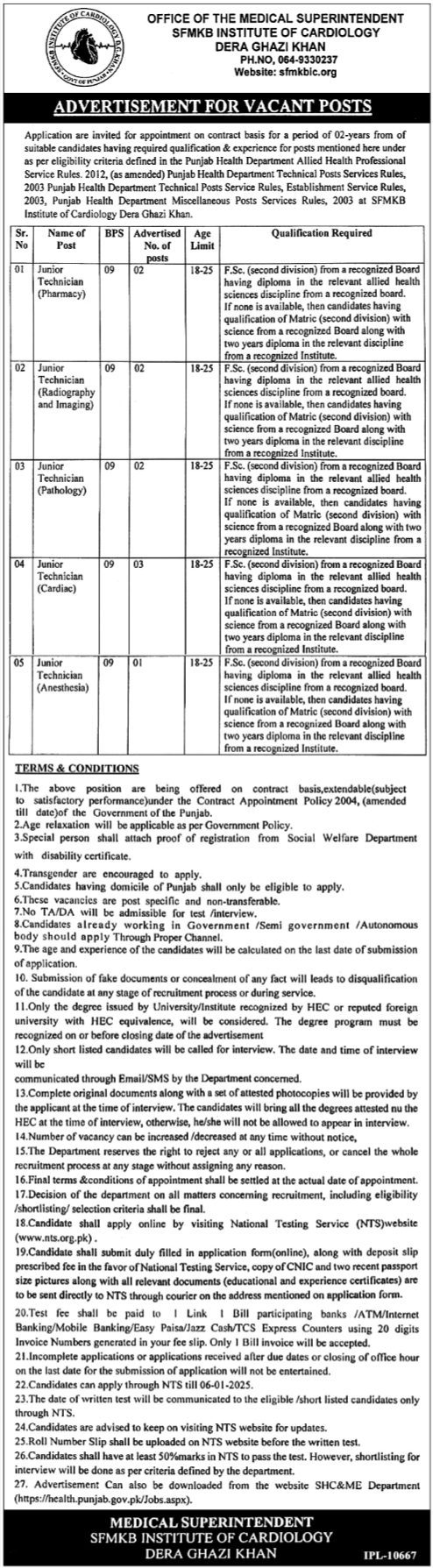 SFMKB Institute of Cardiology Dera Ghazi Khan Jobs 2025