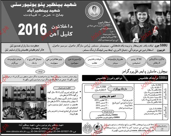 Shaheed Benazir Bhutto university Admission in BA and MA in Shaheed Benazirabad. Read newspaper ad for exact details.