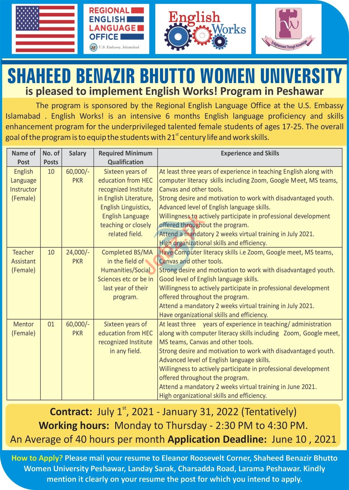 Vacancies in Shaheed Benazir Bhutto Women University Advertisement June 2021