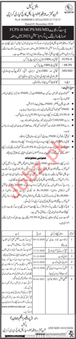 Latest Shaheed Mohtarma Benazir Bhutto Medical College Medical Posts Karachi 2025