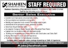 Vacancies in Shaheen Cosmetics Pvt Limited Advertisement October 2023
