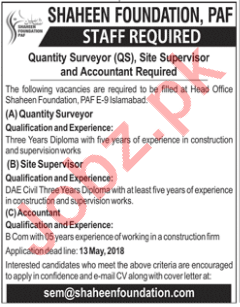 Shaheen Foundation PAF Islamabad Jobs 2018