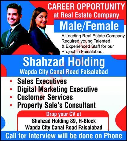 Shahazad Holdings invites applications for job positions advertised in daily Express dated 8 October 2023 for following vacancies in Faisalabad, faisalabad Punjab Pakistan.