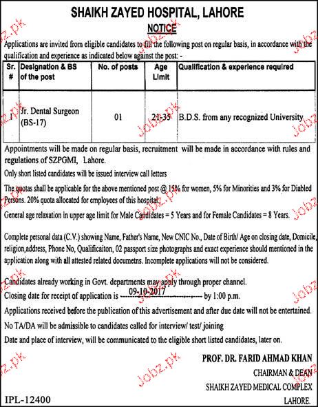 Latest Sheikh Zayed Medical College Medical Posts Lahore 2025