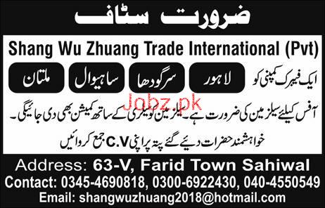 Latest Shang Wu Zhuang International Trading Pvt Ltd Sales Posts Sargodha 2025