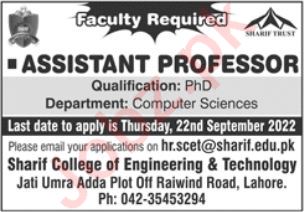 Vacancies in Sharif College of Engineering & Technology SCET Advertisement September 2022