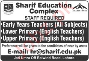 Sharif Education Complex Lahore Jobs 2025